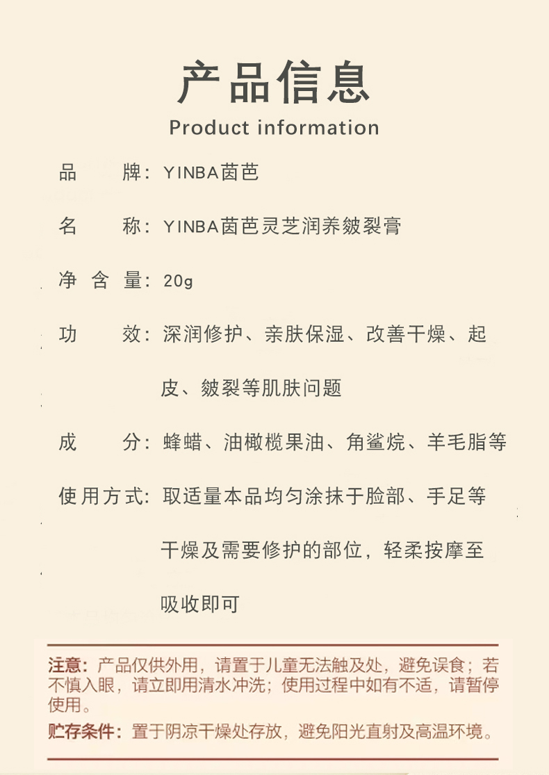YINBA茵芭靈芝潤護(hù)皴裂膏