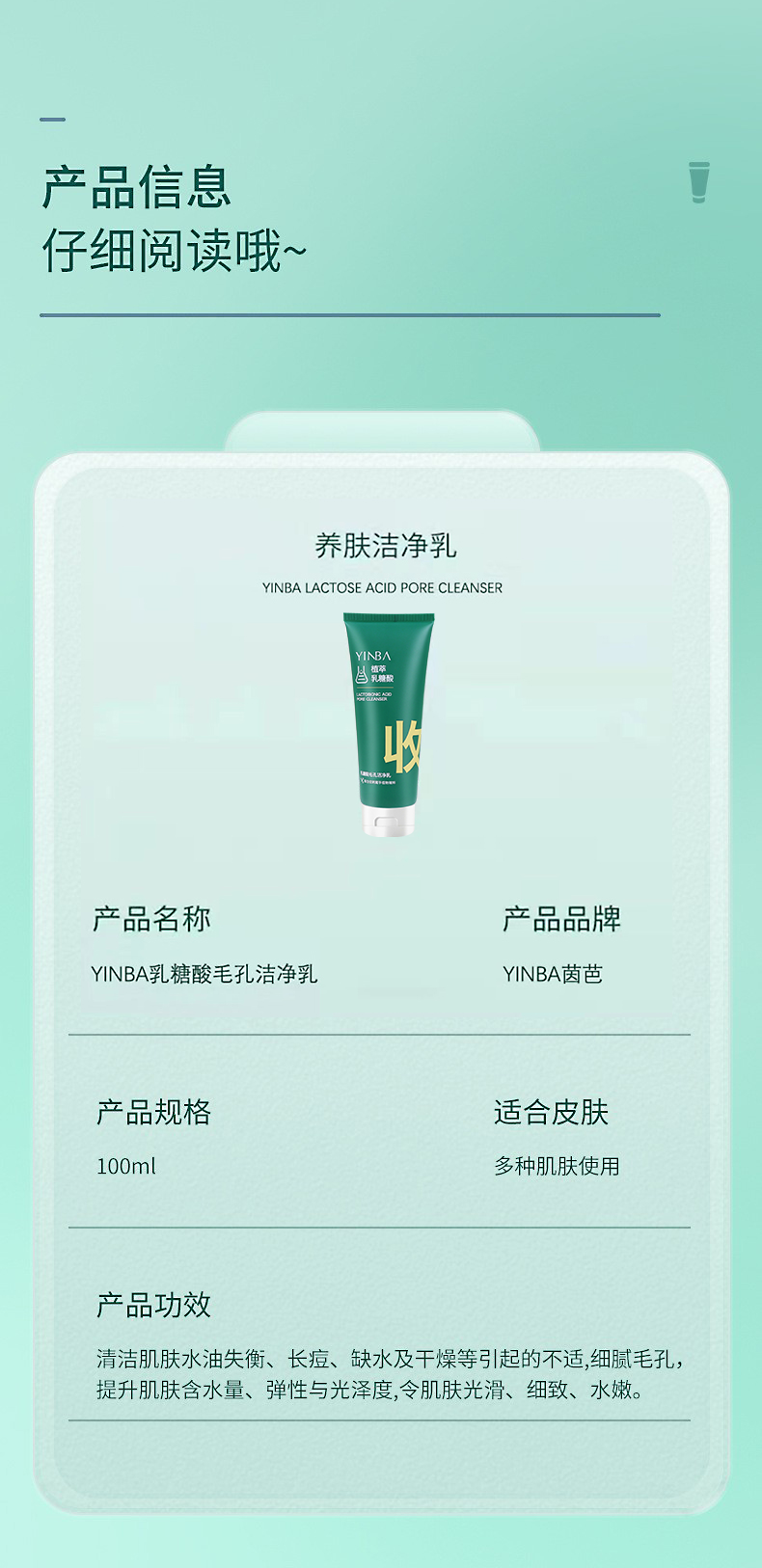 YINBA茵芭乳糖酸毛孔潔凈乳